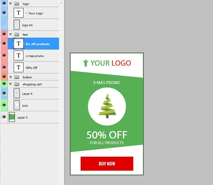 You can easily customize them to meet the needs of any other campaign. For sure, you don't need any superior Photoshop skills to do it. Let's see how to do it using Black Friday banner. In the example below we'll customize it for some Christmas campaign. Following this step by step mini tutorial, you'll bring the desired changes into your banners easily. 11 simple steps, and you'll get the needed result.