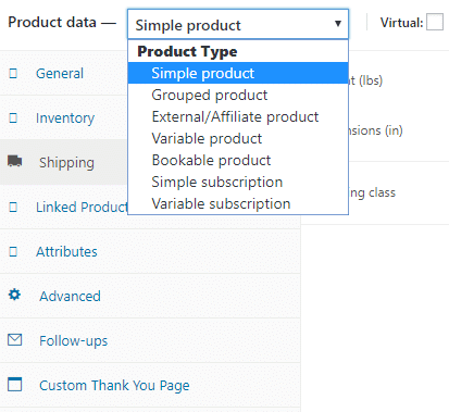 Egy másik fontos dolog a terméktípus. Általában négy terméktípus közül választhatsz, ezek a következők: