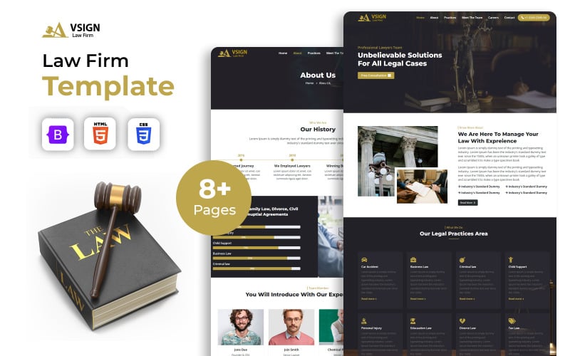 There are many law HTML website templates available, but Vsign stands among the most professional and user-friendly options. If you're looking to build a polished online portal for your legal consulting firm, this business-oriented solution is the one to choose. Our pre-made product is built on the Bootstrap 5 framework, giving you access to a responsive and high-performance foundation. Whether you're a solo attorney or part of a larger legal team, Vsign makes it simple to launch a professional website. The other functionalities available are: